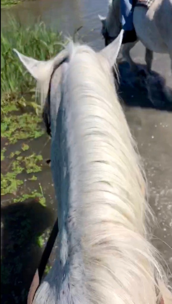 vorher gab es noch eine kleine Einführung in die besondere Reitweise der Camarguepferde
