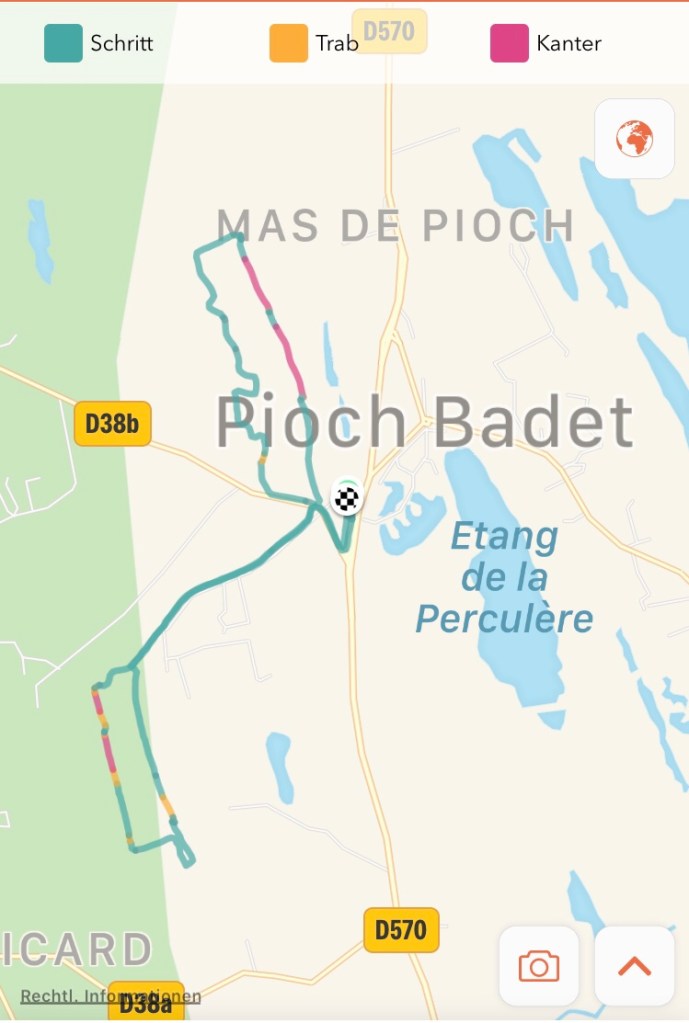 aber Alvito konnte auch sehr sehr flott galoppieren, so flott, dass es davon leider kein Foto oder Video gibt, aber ich kann euch sagen, an den roten Stellen unserer Runde gab es für den Guten nur noch vorne Geld 😂