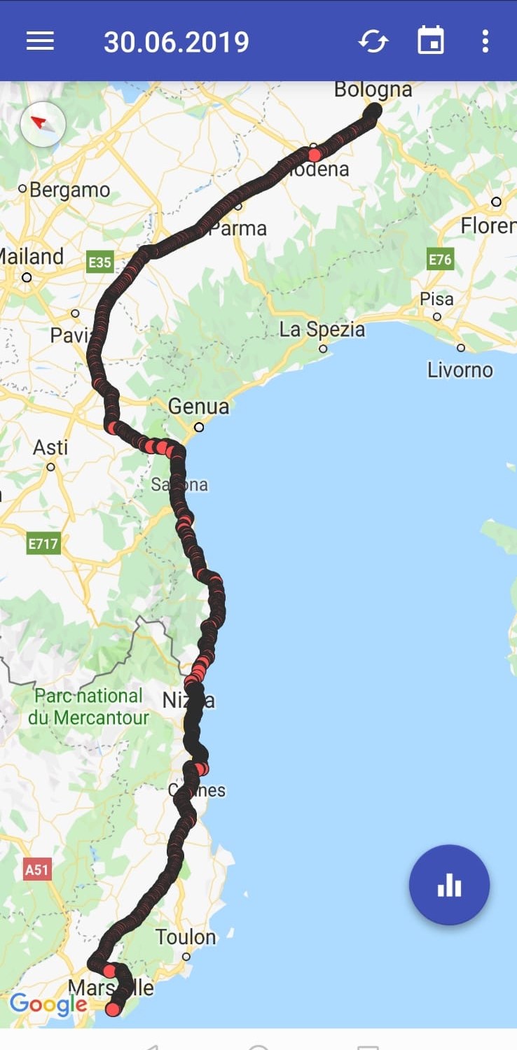 Wie auf dem Weg nach Marseille, wollten wir Richtung Bologna auch wieder schöne Eindrücke sammeln. Was ist zu sagen? Cannes ist nicht der Rede wert. Die Strandpromenade in Nizza ist aus der Ferne betrachtet wirklich schick gewesen – aber leider über die ganze Länge für uns und alle anderen Motorisierten nicht zugänglich, weil dort ein Iron Man Wettbewerb lief.