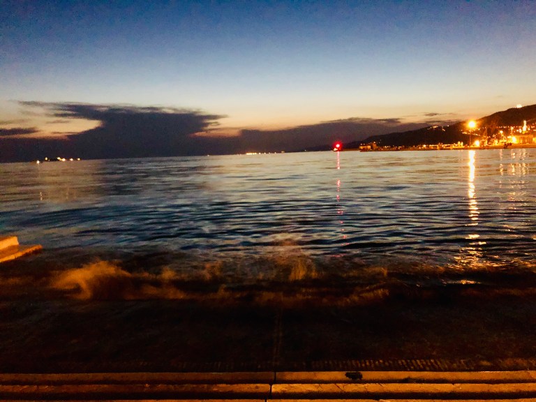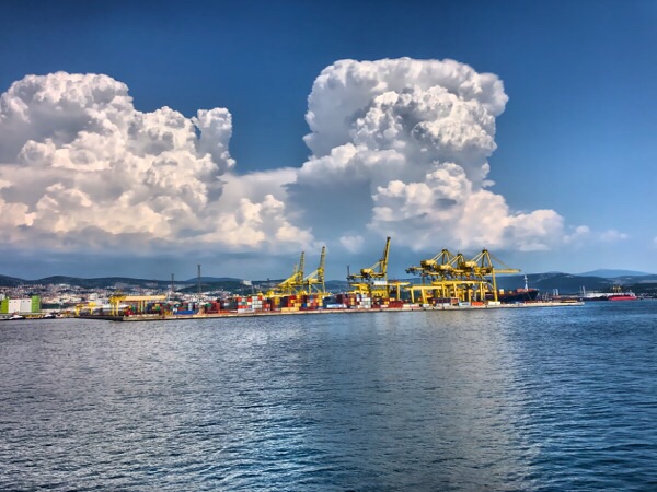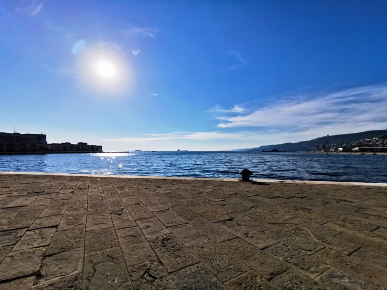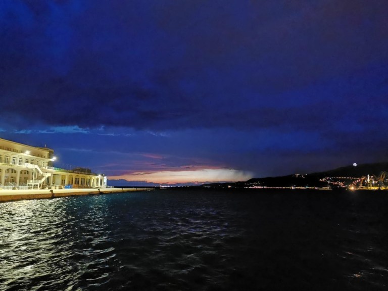 Auf der einen Seite die Weite des Golf von Triest (klingt das nicht großartig), auf der anderen Seite Teile des Hafens, ein Tiefwasserhafen, der als maritimes Tor für Norditalien, Deutschland, Österreich und Zentraleuropa gilt.