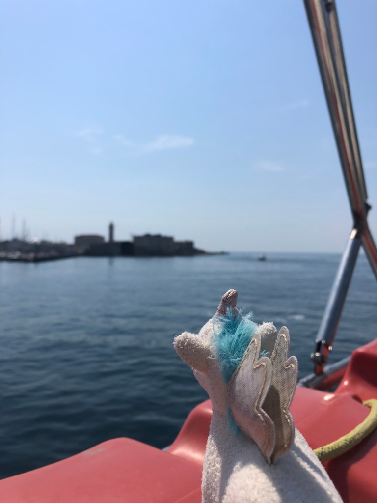 In Muggia selber hatten wir nur eine knappe Stunde Aufenthalt, wovon wir eine halbe Stunde nur an dem kleinen Hafen auf der Mauer saßen und Beine baumeln ließen (-: