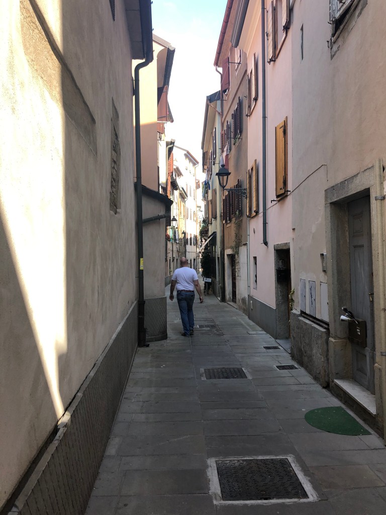 Als wir von der Autobahn kamen, fiel uns die zweisprachige Beschilderung auf: Trieste (italienisch) und Trst (slowenisch)…..(willst du ein „i“ kaufen…., oder ein „e“…..psssst)