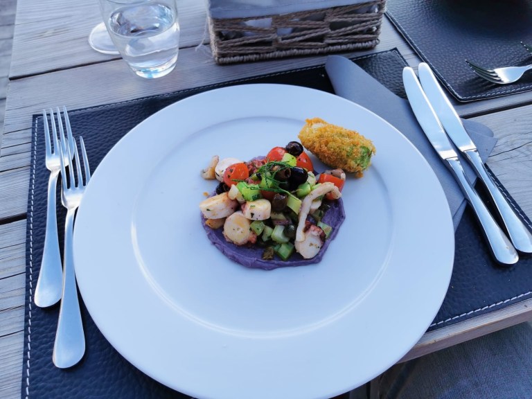 Nach unserem Rundgang um den See brachen wir zu diesem Restaurant zwischen den Bergmassiven auf. Es sollte laut Tripadvisor über sehr gutes Essen verfügen.