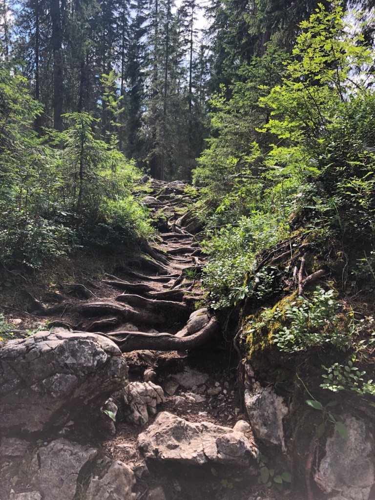 Immer wieder änderte sich die Perspektive auf das Bergmassiv. Eins blieb hier oben zwischen Welschnofen und dem Karer See aber gleich. Im vergangenen Jahr hat hier ein Sturm gewütet und Massen an Bäumen „gefällt“. Hin und wieder sieht man dann Überlebende auf den kahlen Hängen.