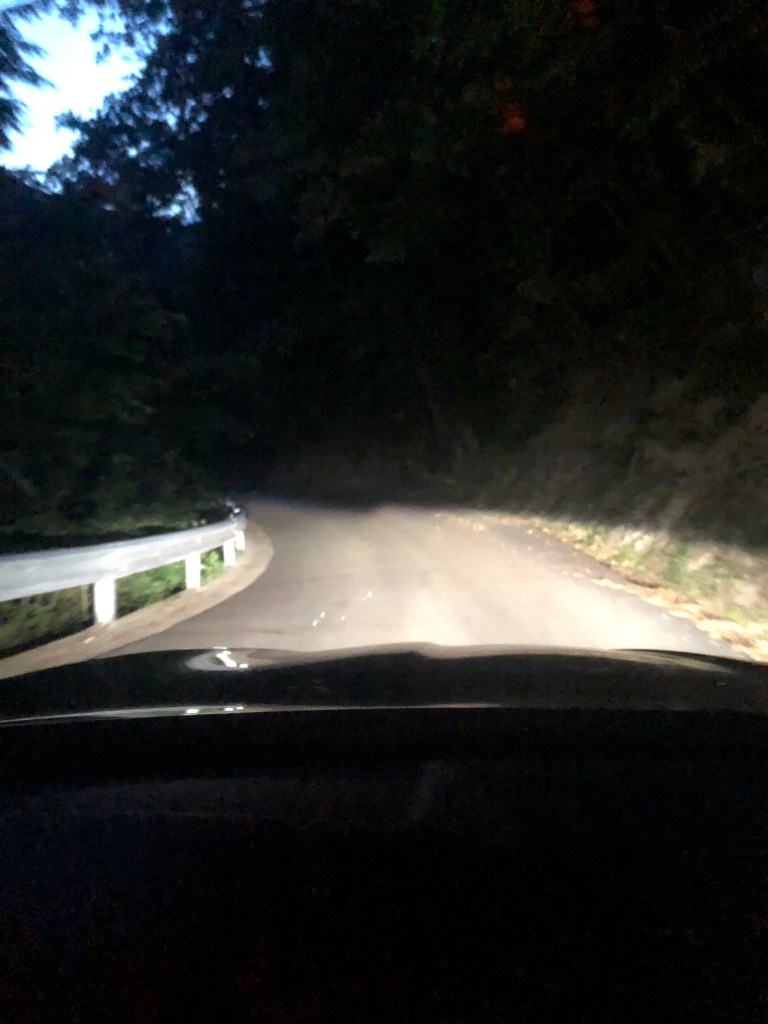 Bei Einbruch der Dämmerung machten wir uns dann auf den Heimweg. Über eine sehr verlassene Straße…..